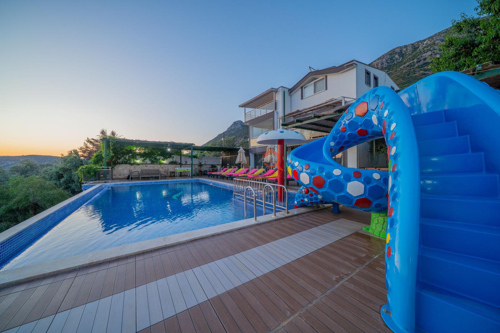 Villa Akça Duo, sadece dinlenme değil, aynı zamanda eğlence arayanlar için de ideal. Villamızda bulunan langırt ve masa tenisi, keyifli vakitler geçirmenizi sağlayacak. Büyük açık yüzme havuzumuz, serinlemek ve güneşlenmek isteyenler için mükemmel bir alan sunarken, çocuklar için özel tasarlanmış çocuk havuzu ve oyun alanı da küçük misafirlerimizin neşe içinde vakit geçirmesini sağlıyor.