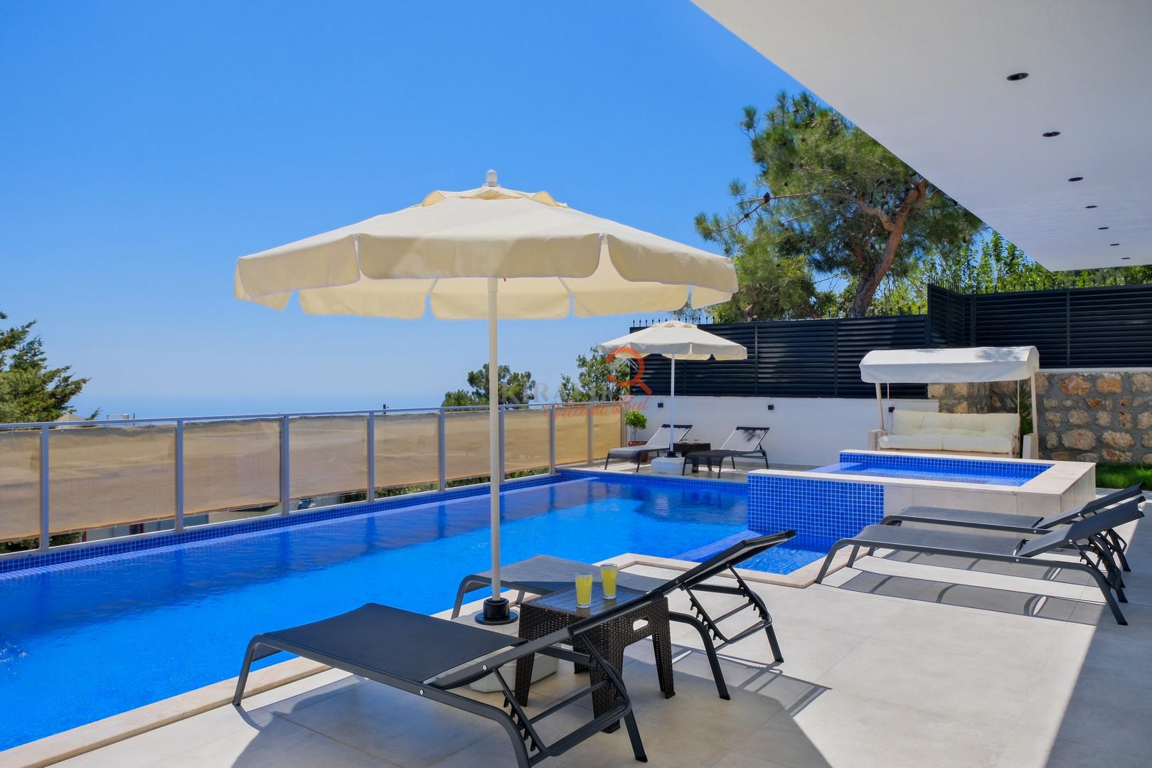 Kalkan'ın eşsiz güzelliklerini keşfederken, akşamları villanızın konforuna dönmenin keyfini yaşayacaksınız. Jakuzide günün yorgunluğunu atarken, saunanın rahatlatıcı etkisiyle kendinizi yenilenmiş hissedeceksiniz.