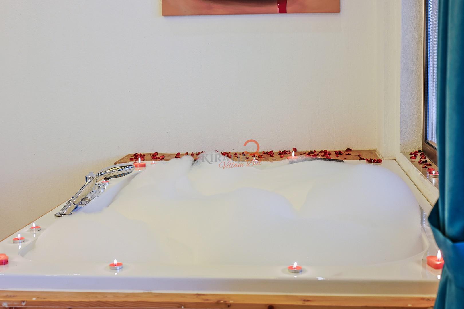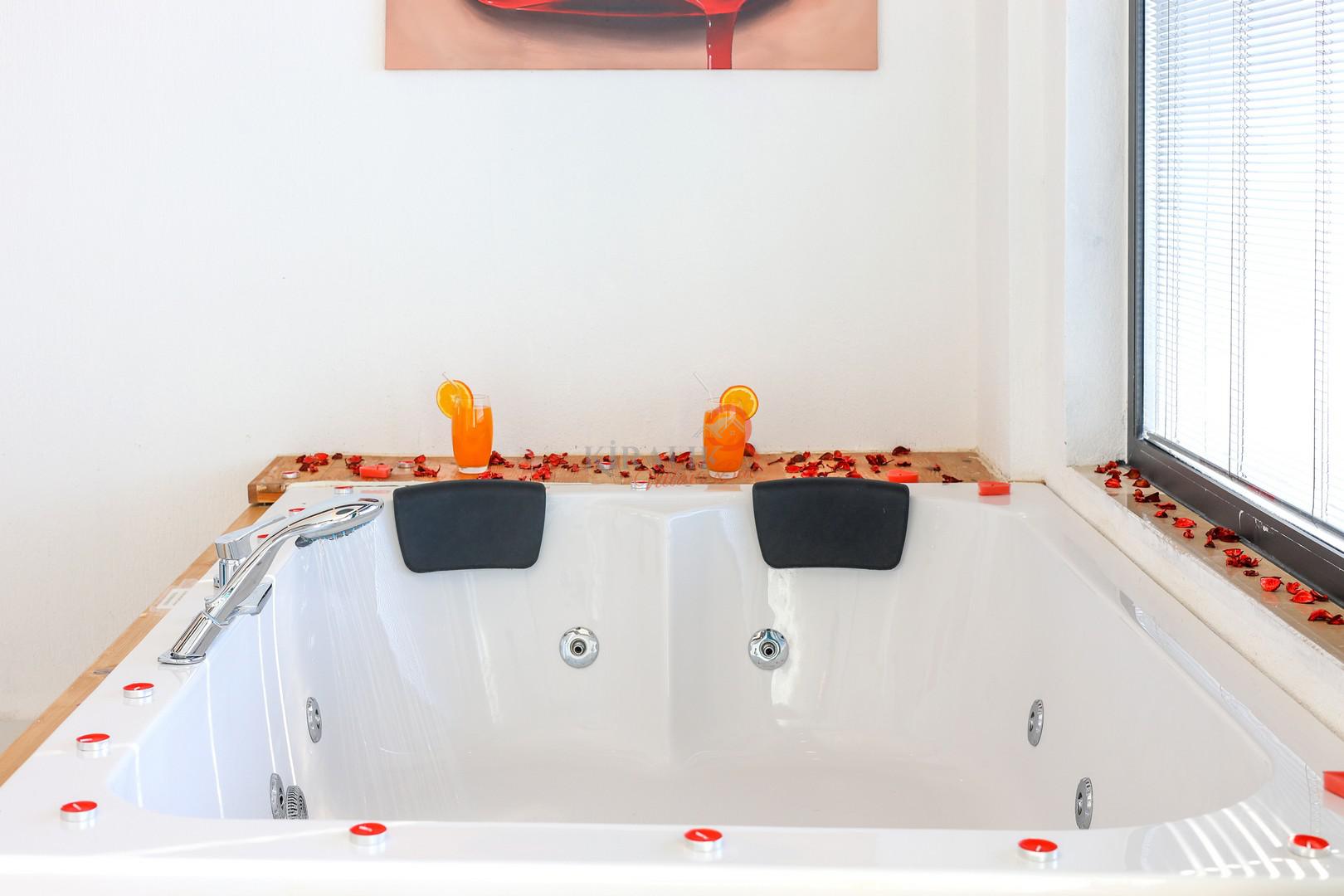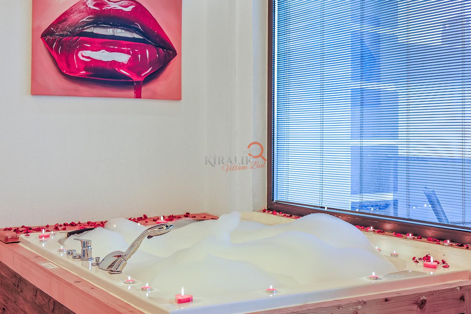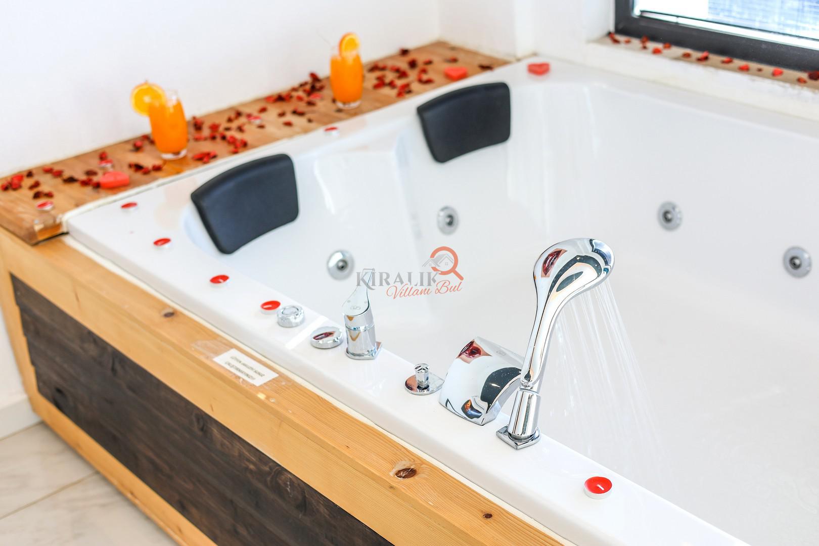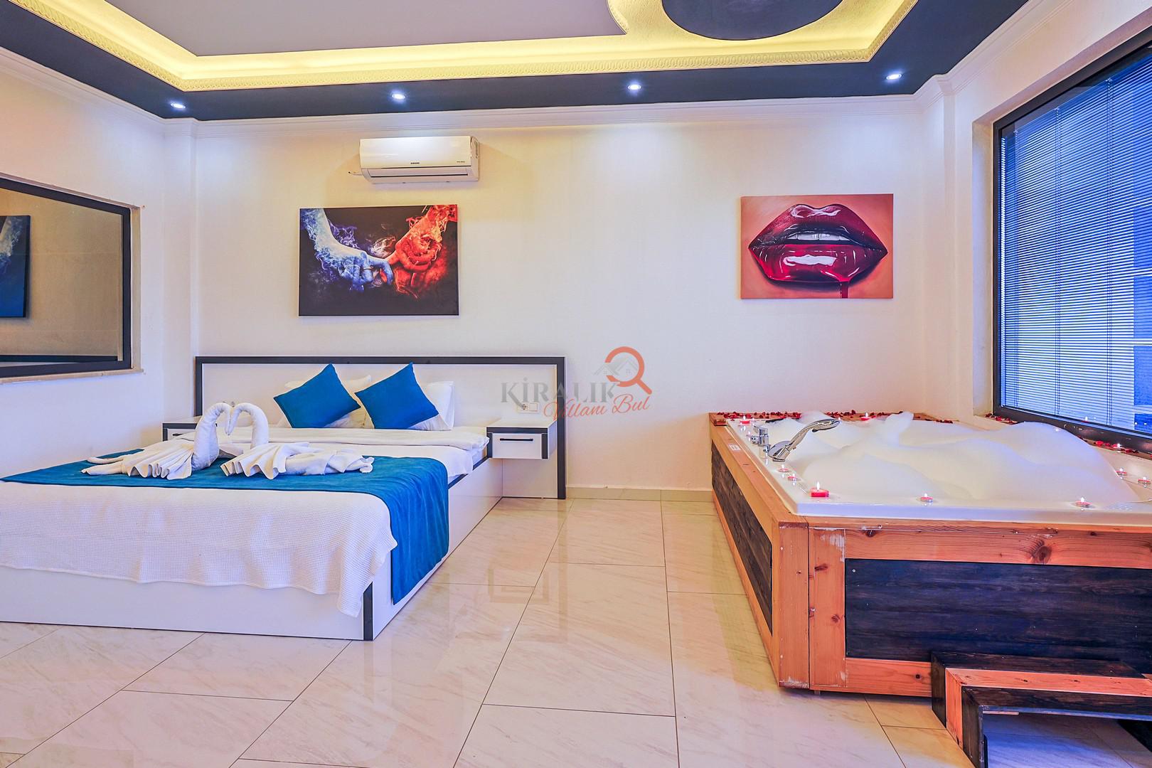 Maksimum rahatlık için bir yatak odasında romantik jakuzi