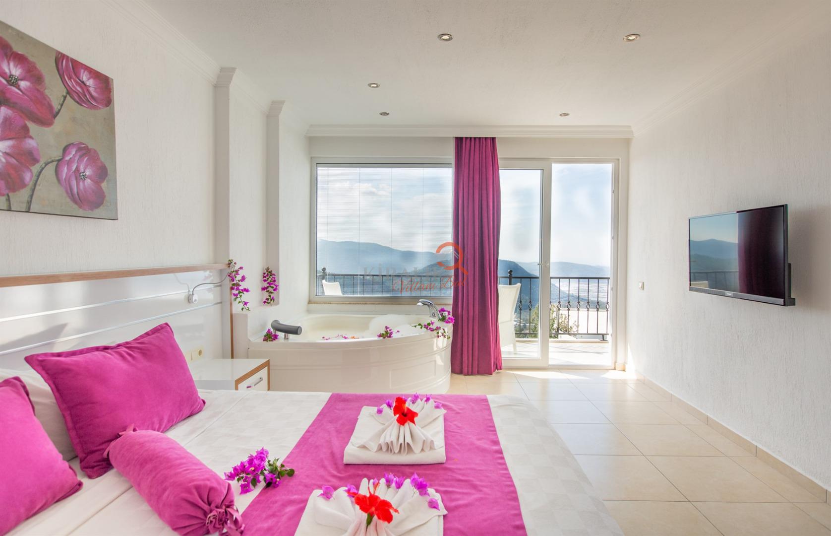Ana yatak odasında lüks jakuzi keyfi