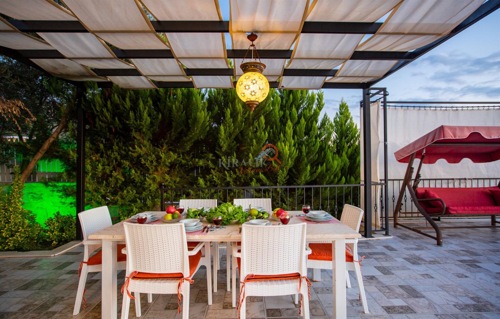 Villamızın en çarpıcı özelliklerinden biri, korunaklı havuz alanı. Mahremiyet içinde güneşlenebilir, serinleyebilir ve ailenizle veya sevdiklerinizle unutulmaz anlar yaşayabilirsiniz.