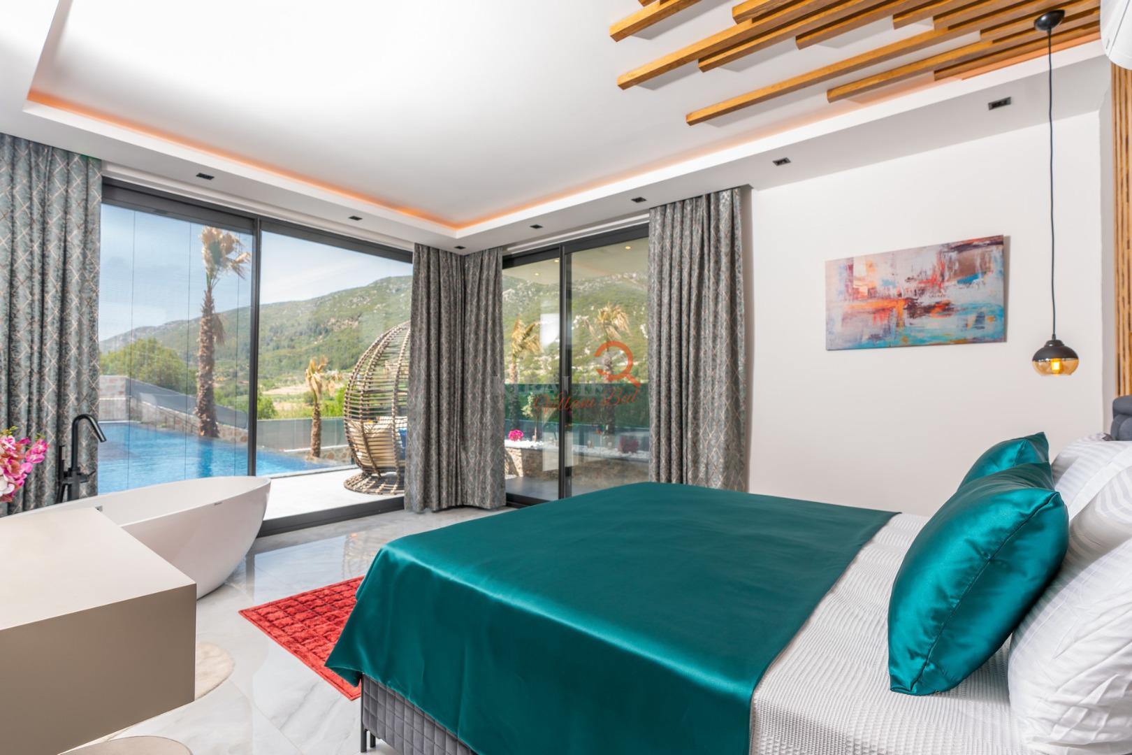 Antalya / Kaş / Kalkan / SarıbelenVilla Ferzan Lüx Kalkan Sarıbelen mevkisinde bulunan kiralık Muhafzakar villamız, sessizliğin, huzurun hakim olduğu bir villada tatil isteyen Aileler için oldukça uygun bir seçenektir.Muhafazakar ve Doğa manzaralı villalar kategorisinde yer alan villamız, 3 yatak odası ile 6 kişilik konaklama kapasitesine sahiptir. Havuzu korunaklı ve bahçesi dışarıdan görünmeyen Villa Ferzan Lüx mahremiyete önem veren Aileler için huzur dolu bir tatil fırsatı sunuyor. Ayrıca villamızın Ebeveyn yatak odasında bütün yılın yorgunluğunu atabileceğiniz 2 kişilik jakuzide yer almaktadır