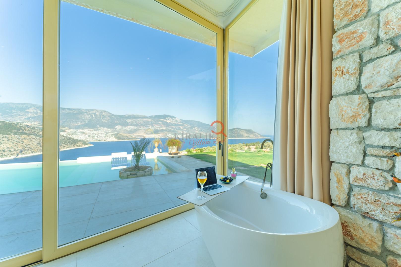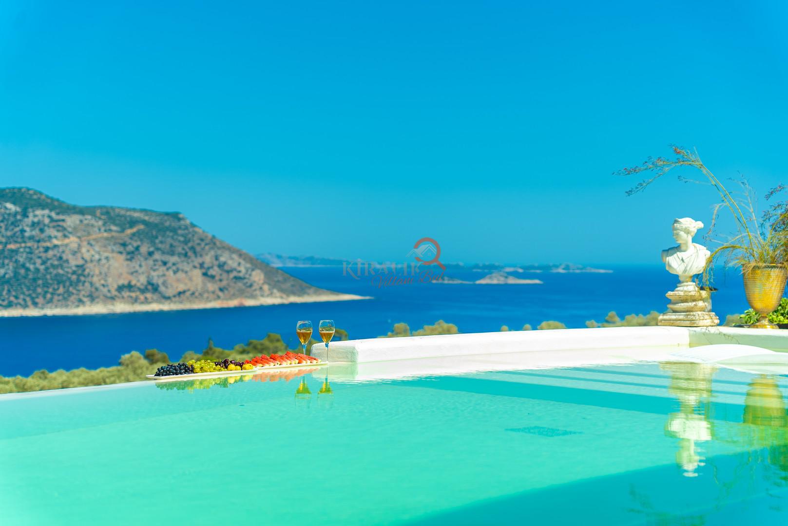 Villa Şatoram'ın en çarpıcı özelliği, şüphesiz ki sonsuzluk havuzundan izlenebilen muhteşem deniz manzarası. Mavilikler içinde kaybolurken, Kalkan ve Kalamar Koyu'nun panoramik görüntüsü gözlerinizin önüne serilecek. Modern tasarımı ve çarpıcı mimarisi ile villa, lüks ve konforu mükemmel bir şekilde harmanlıyor.