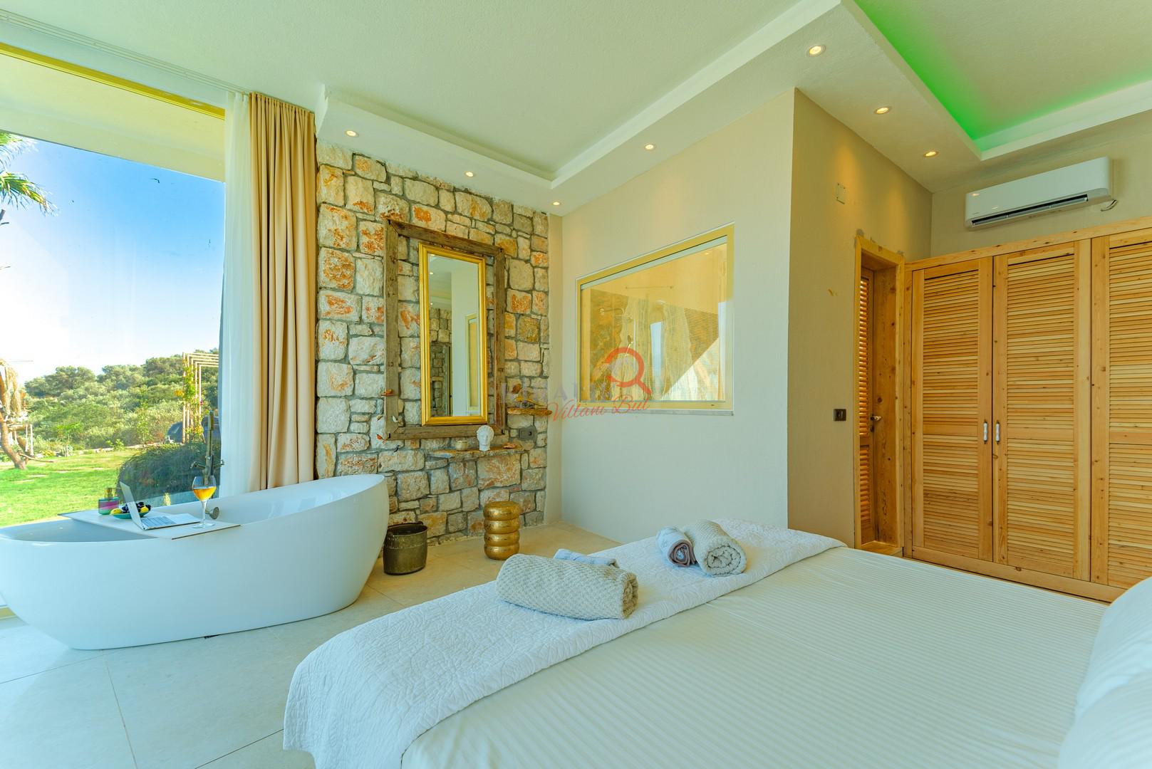 Zeytin ağaçlarının arasında, Akdeniz'in masmavi sularına nazır bir konumda yükselen Villa Şatoram, sizleri unutulmaz bir tatil deneyimine davet ediyor. Bu taş ve ahşap mimarinin harmonisi ile inşa edilmiş lüks villa, Kalkan'ın kalbinde, doğanın koynunda bir cennet vaat ediyor.