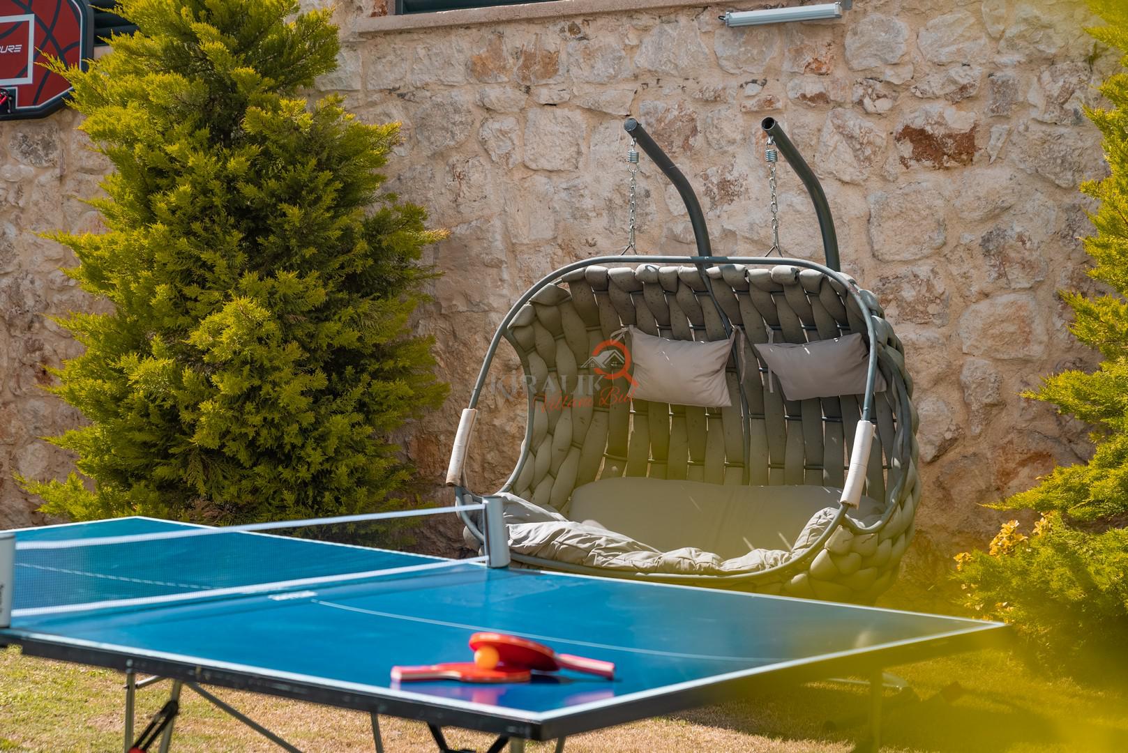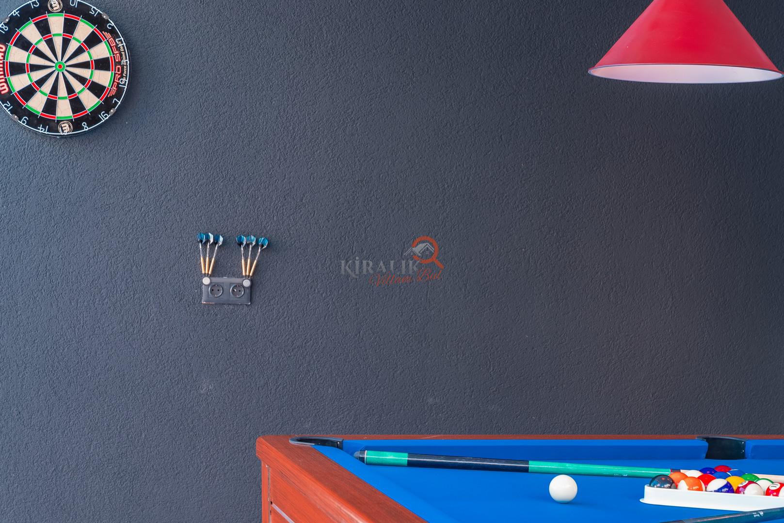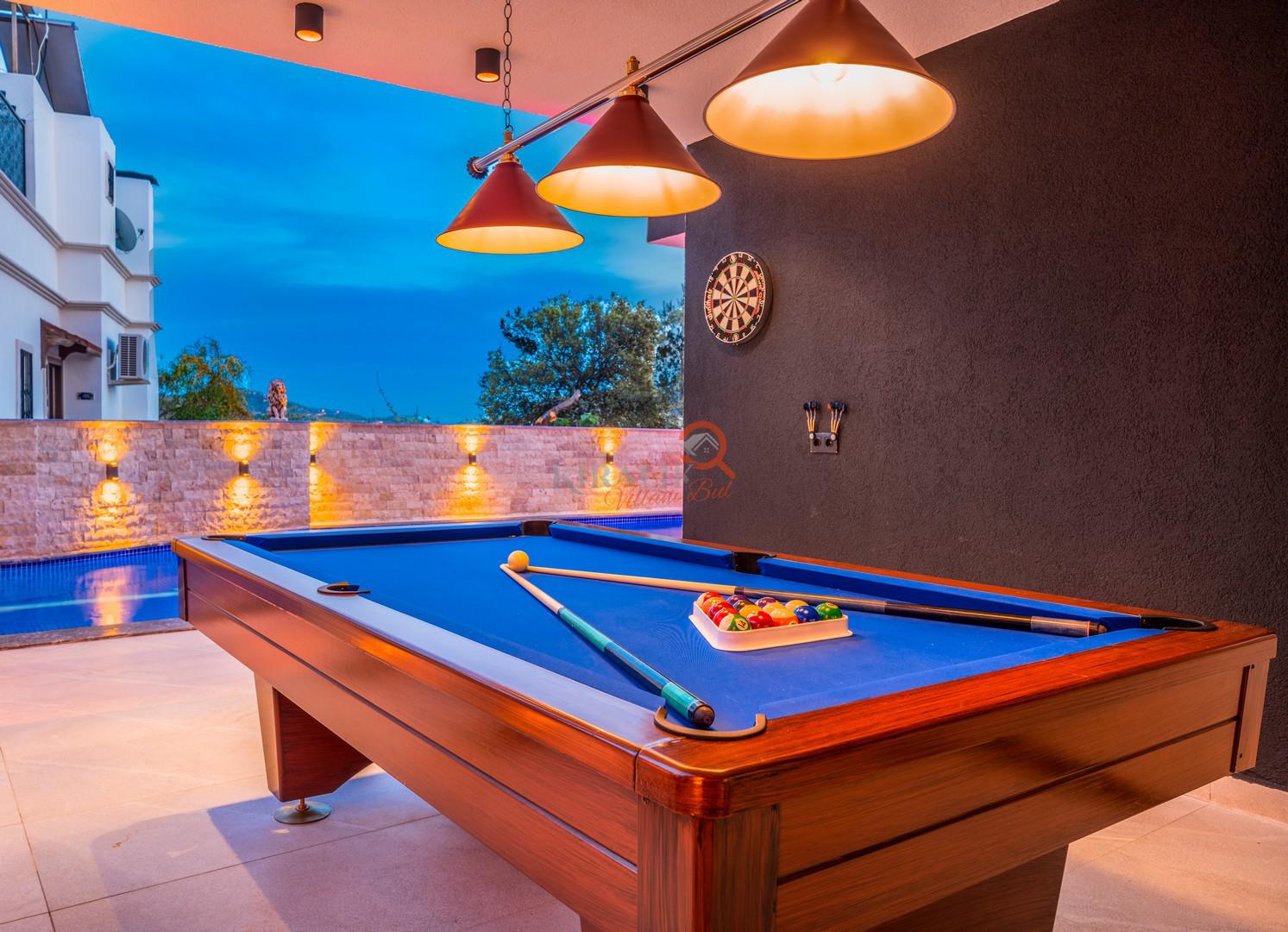 Villa içerisinde bulunan bilardo masası ve masa tenisi, tatil keyfinizi ikiye katlıyor. Arkadaşlarınızla veya ailenizle keyifli turnuvalar düzenleyebilir, akşamları eğlenceli oyun seansları yapabilirsiniz.