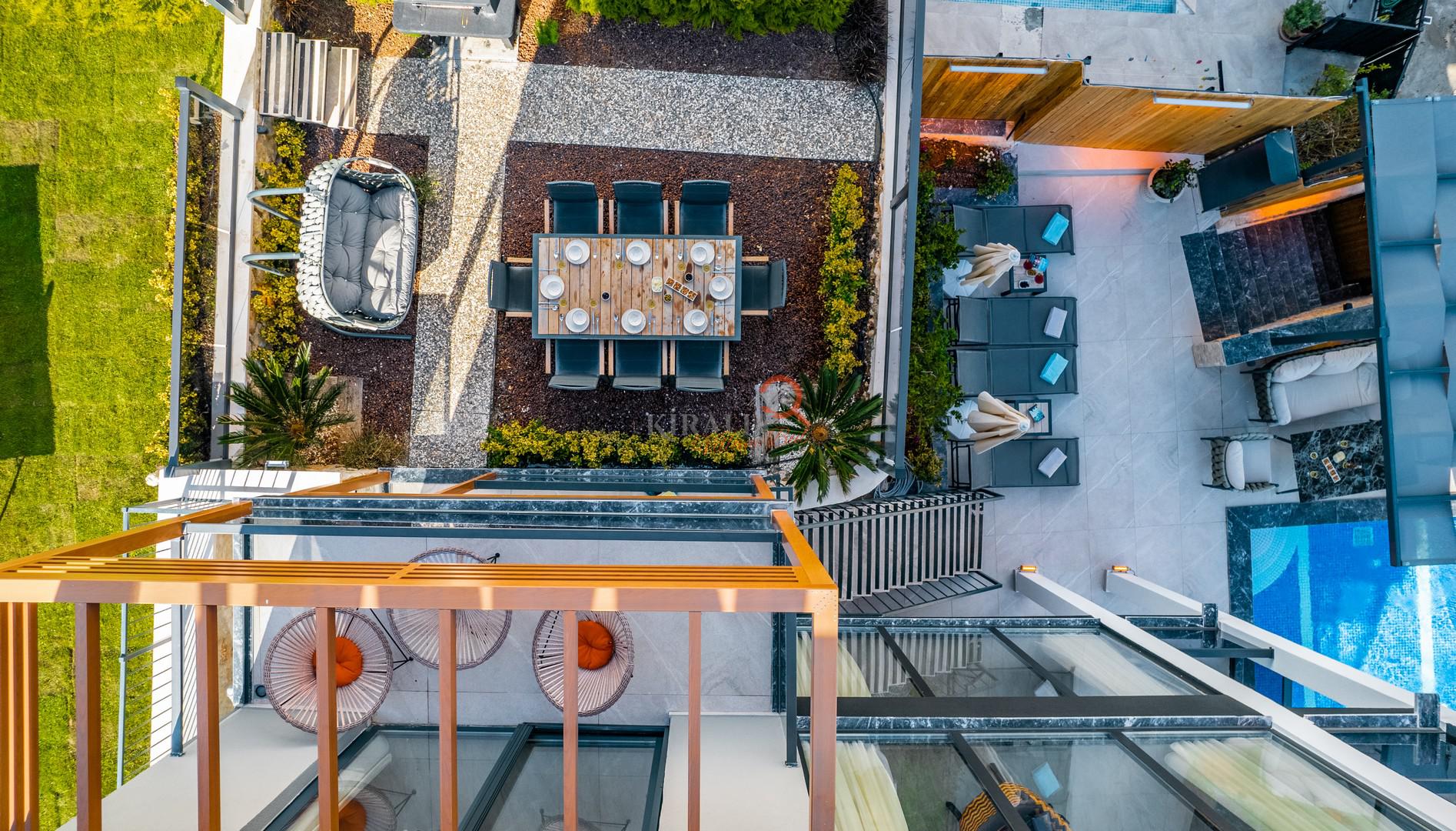 Üst kattaki geniş teras, nefes kesen deniz manzarasıyla sizi büyüleyecek. Burada, sevdiklerinizle birlikte kahvaltı yapabilir, gün batımını izleyebilir veya yıldızların altında romantik bir akşam yemeği yiyebilirsiniz.