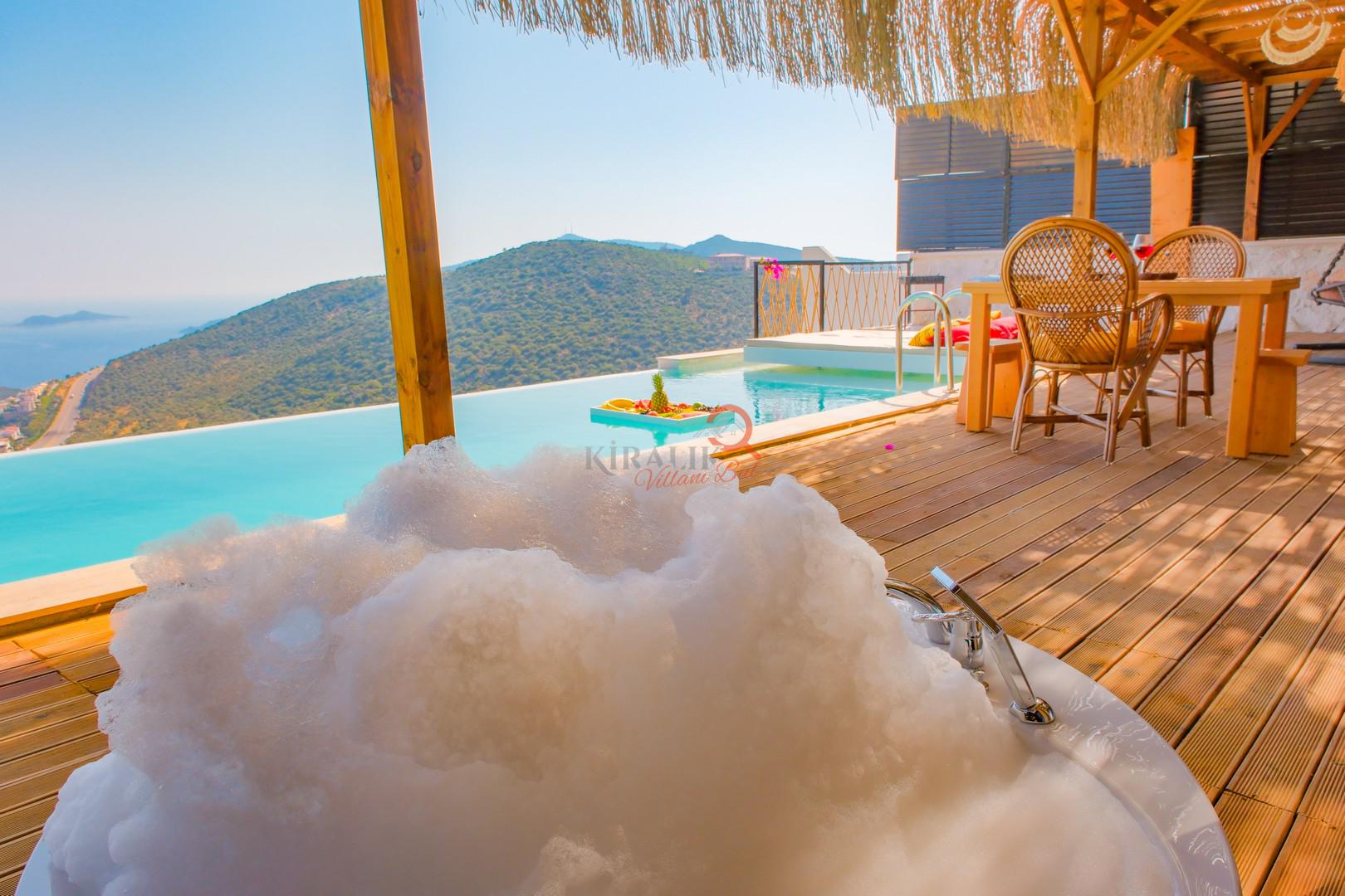 Romantik Jakuzi: Havuz terasında yer alan 2 kişilik jakuzi ile yıldızların altında romantik anlar yaşayın.